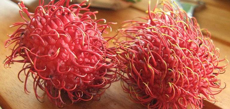 Closely related to the lychee and indigenous to Southeast Asia, therambutanderives its name from the Malay word "hair". It's not hard to see why — the distinctive yellow or red-skinned fruit is covered in soft hair-like spines. Inside, the fruit's sweet, white pulp supposedly tastes like a grape or a plum.