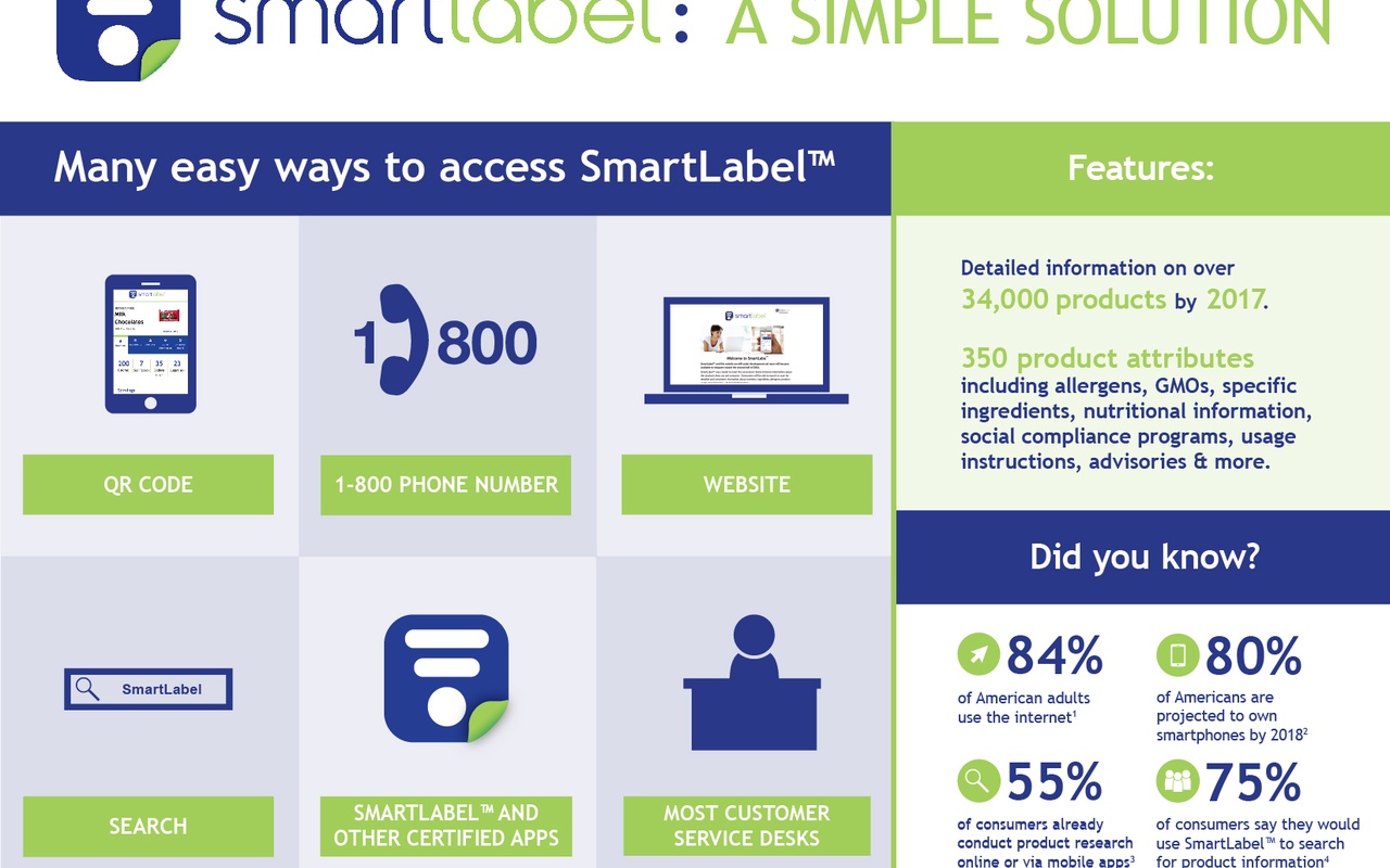 除了扫描产品包装上的SmartLabel二维码,消费者还可以通过以下方式获得所有相同的产品信息: