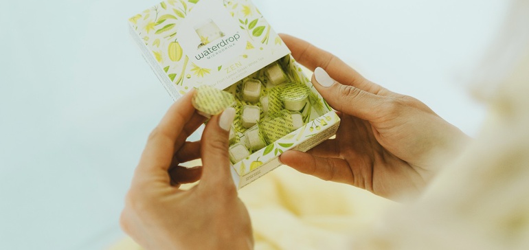 - 根据发给Food Dive的一份新闻稿,奥地利饮料初创公司waterdrop将在美国首次亮相。该公司销售“微型饮料”-可溶于水的无糖小方块。它还出售钢瓶、玻璃瓶和竹瓶。