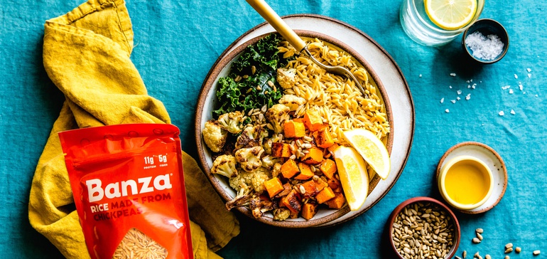 Banza宣布它的新鹰嘴豆米将在全国的全食超市的货架上出售。这家以鹰嘴豆意大利面而闻名的公司表示,鹰嘴豆米的蛋白质含量是糙米的三倍,纤维含量是糙米的两倍,净碳水化合物含量比糙米少30%。