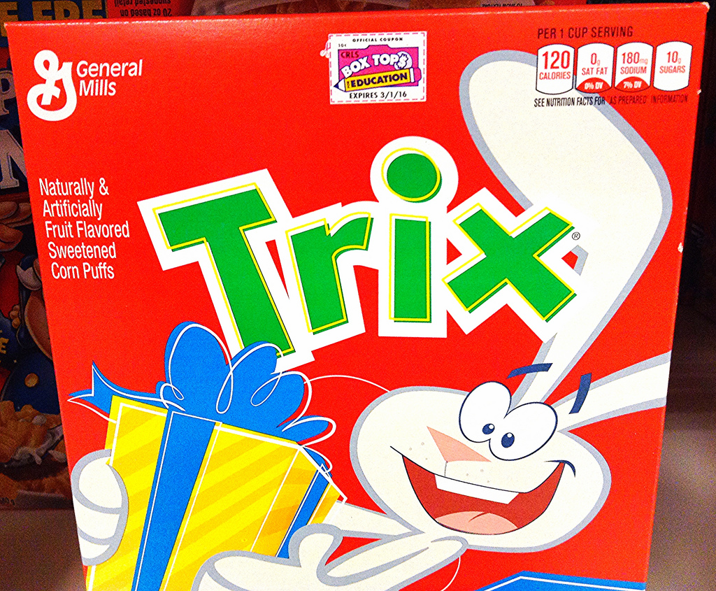 通用磨坊也推进了自己的倡议,在2016年宣布,它重新配方Trix和其他六种谷物,作为其承诺的一部分,将从所有谷物品牌中去除人工色素和香料。9月,它决定这么做带回经典的Trix麦片消费者抱怨其更健康的更新后,有一些呼吁自然色调令人沮丧。