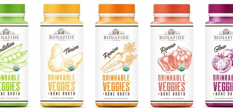 的产品,如日益流行Bonafide Provisions的可饮用蔬菜饮料可能是这种转变的最好例子。这是一种结合了骨汤、冷汤和HPP果汁的蔬菜饮料。该公司将饮料生产线定位为与金宝汤(Campbell Soup)的V8等市场领导者竞争。诚意声称这个公式的“骨汤中的胶原蛋白和蛋白质的强大组合,加上整个有机蔬菜,有助于保持你的饱腹感,而不用担心糖分崩溃。”