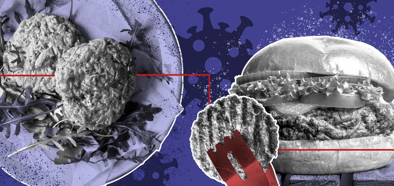 由于没有传统的肉类产品也促成了植物为基础的行业的发展。由于工人肉类加工厂工作密切联系在一起,他们中的一些在美国的第一COVID-19热点。案件大量迫使一些大型加工厂退一步生产或完全关闭,然后慢慢地重新打开随着工人的康复,工厂被改造以提高工人的安全。