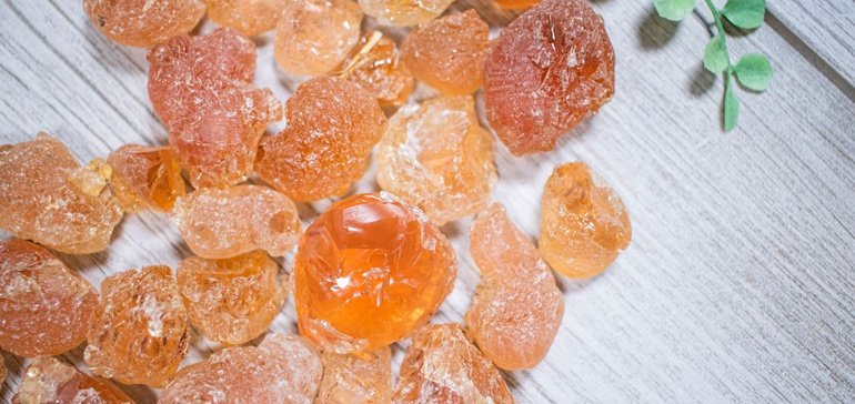 阿拉伯树胶产于非洲,主要分布在乍得、塞内加尔、埃塞俄比亚和苏丹等国。这种树胶是从刺槐树的树皮中提取的,这样物质就会渗出来。然后农民们收集树木外面硬化的分泌物。