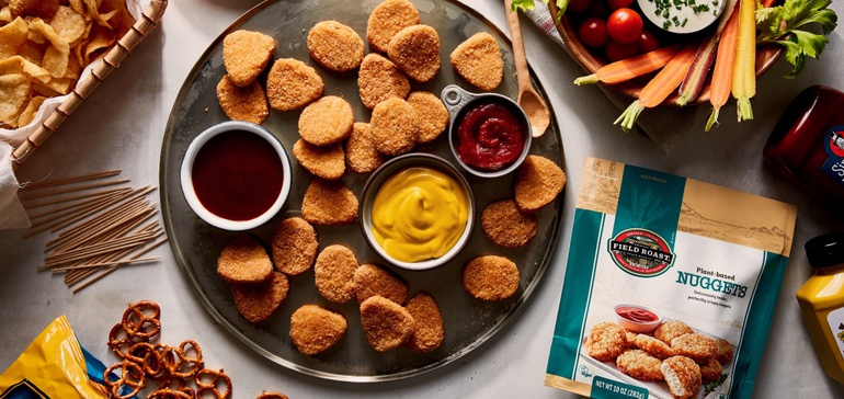 - 基于植物的食品品牌Field Roast正在推出其首个人造鸡肉产品:基于植物的块。