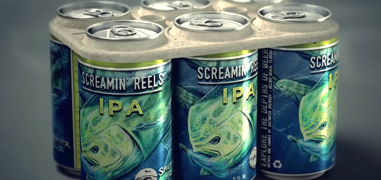 佛罗里达州德雷海滩的咸水啤酒厂正在使用麦小和大麦而不是塑料制成的可生物降解和粘性的六包环设计,而不是塑料根据快速公司。一个名为E6PR的初创公司 - 用于“ECO六包环” - 制作了新的包装设计,它声称不会伤害消费它的动物。