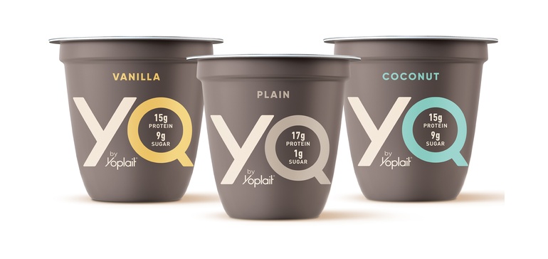 - 通用磨坊(General Mills)推出了优诺(Yoplait)推出的YQ酸奶,这是一种新的酸奶品种,蛋白质含量高,比其他品牌的甜度低,该公司宣布.YQ的普通品种每5.3盎司只有1克糖。每份含有17克蛋白质。这些口味的酸奶,包括椰子、桃子、芒果、酸橙、草莓、蓝莓和香草,含有9克糖(比主要的希腊低脂酸奶少40%)和15克蛋白质。