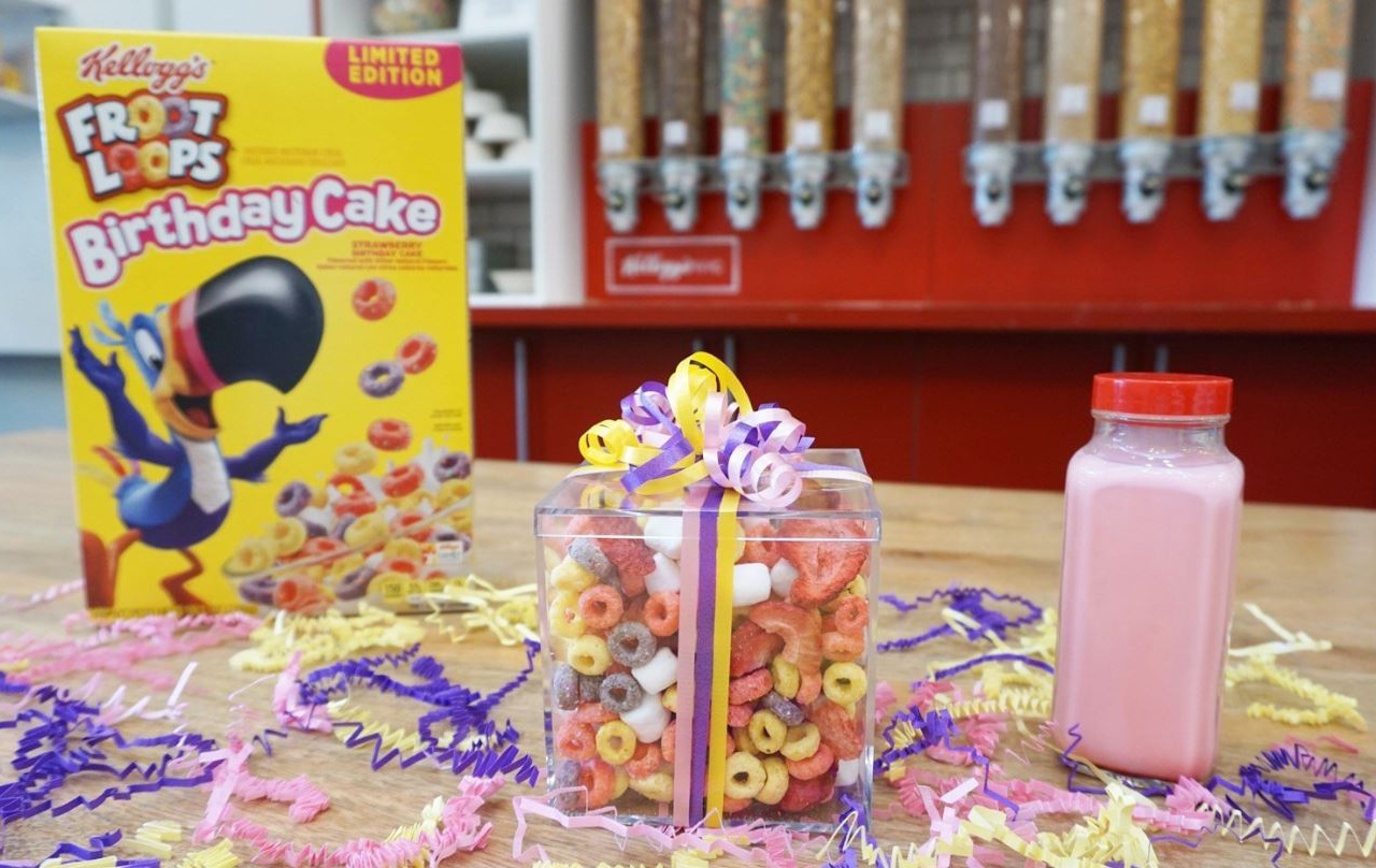 作为促销活动的一部分,在7月13日这家餐厅的周年纪念日那天,家乐氏为首批113位客人提供了一块由果味圈生日蛋糕和米花糖制成的特别“蛋糕”——每一年代表家乐氏生产麦片的一年。凯洛格也在网上发布了自称“夸张的食谱”所以消费者可以在家里制作生日蛋糕,也可以享受草莓蛋糕奶。