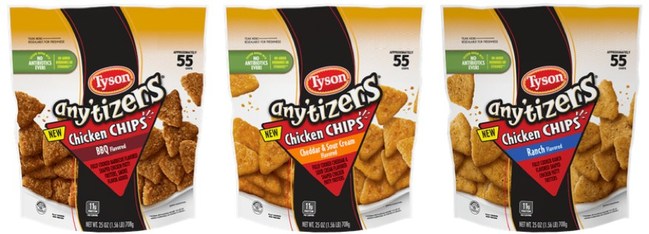 泰森食品刚刚推出了Any'tizers鸡肉片不含抗生素的全白肉鸡肉,上面覆盖一层脆脆的薯片。这款新产品有三种口味:烧烤、牧场和切达干酪和酸奶油。每袋含有55片薯片,每份约含11克蛋白质。