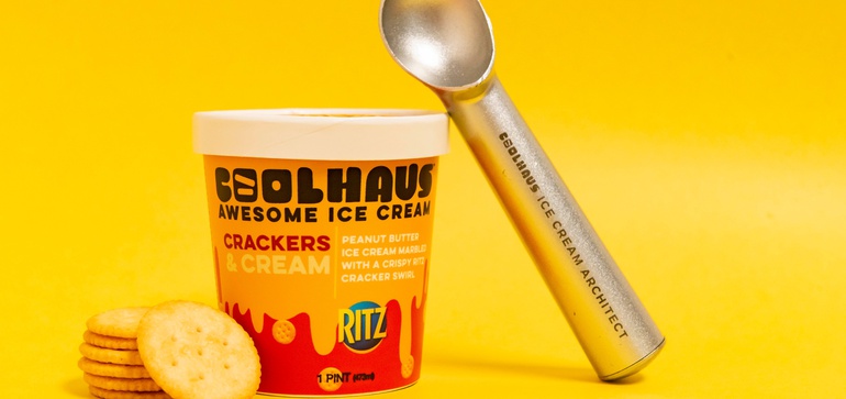 Coolhaus公司在社交媒体上宣布,他们将与亿滋国际合作,推出新的冰淇淋口味的cracker & cream。这种口味的冰淇淋含有花生酱和丽兹饼干的漩涡。