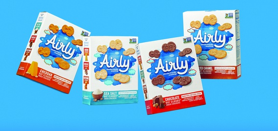 这款新饼干有四种口味可供选择:切达燕麦云、海盐、巧克力和咸焦糖。比较燕麦云将在Airly Foods的网站和亚马逊上销售,2021年在全国部分零售商上架。