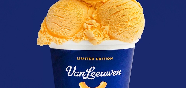 冰淇淋在凡大街上出售Leeuwen的本周网站纪念国家冰淇淋日,快速售罄。在一个蓝色品脱容器中的冰淇淋橙色勺的图片旁边,具有品牌的签名橙色面条,面包车Leeuwen的网站描述因为这种味道很简洁:“你知道,你一直想知道这种混搭会是什么味道。至少现在是这样。”