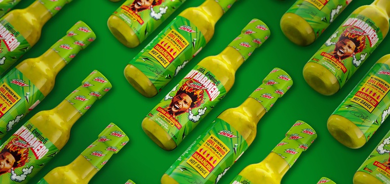 这款限量版辣酱和受人喜爱的苏打水一样是亮绿色。它是由百事可乐汽水品牌、德克萨斯州热门商店市场iBurn和篮球明星乔尔·恩比德合作创建的。根据Food Dive网站发布的一份新闻稿,这种酱汁使用了哈瓦那辣椒,融合了Mtn Dew的柑橘味和辣酱汁的味道。