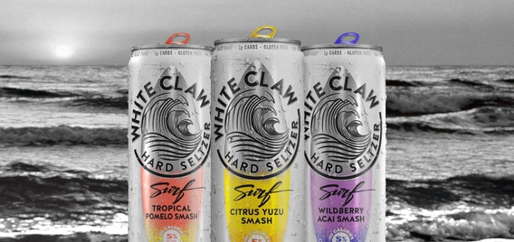 这hard seltzer giant宣布了White Claw Surf, its newest set of drinks, featuring more than one fruit as the main flavor. It comes in four different varieties: CitrusYuzuSmash, Tropical Pomelo Smash, Watermelon Lime Smash and野生浆果Acai粉碎。
