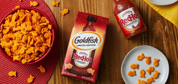 金宝汤的零食饼干与顶级辣酱品牌之一合作推出了一款联名辣的零食今年夏天。金鱼弗兰克的RedHot这种以麦考密克辣酱为特色的饼干将于5月上市。