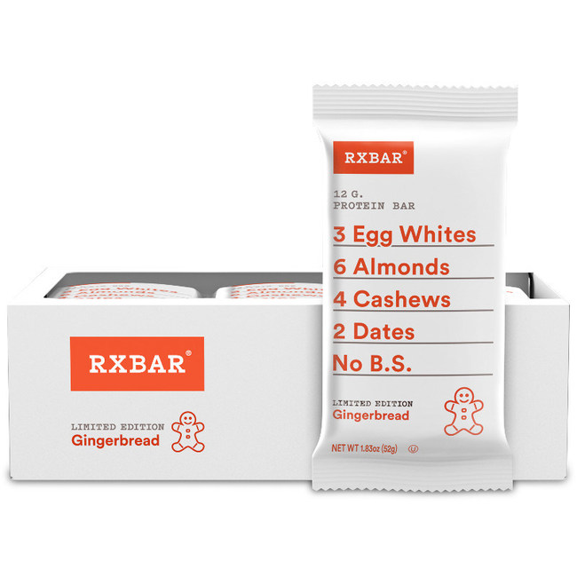 对于这个假日季节,RXBAR正在推回其限量版姜饼风味蛋白质酒吧。该公司将齐全,姜和海盐与其签名简单成分混合,包括蛋白,日期和坚果。