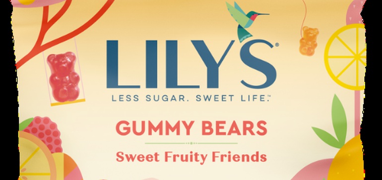 - Lily 's Sweets推出了首款非巧克力产品——Lily 's Gummies。可在酸软糖蠕虫和软糖熊品种甜菊糖甙甜而言含糖少于一克,不含麸质GMO和n自然着色的,自然调味的