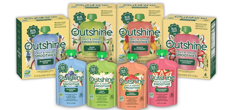 Nestlé公司的冷冻水果条品牌Outshine将推出水果和酸奶冰沙袋,这是该公司9年历史上第一款可存放的便携式零食。