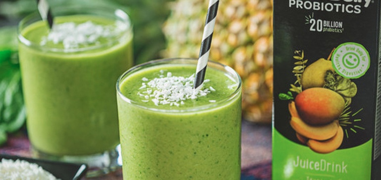 益生菌是注册成立从达能和乔巴尼的酸奶产品,他们出现在凯洛格的S以及在茶,咖啡,烘焙食品,冰淇淋,格兰诺拉麦片和酒吧。最近,一般磨坊宣布它正在与GoodBelly合作开发一种益生菌麦片。