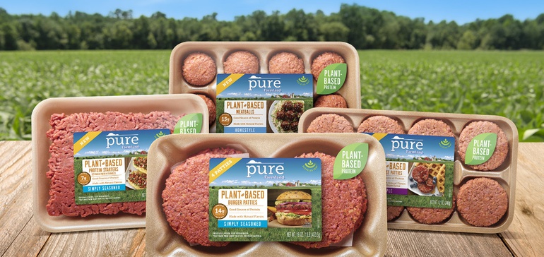 - Smithfield Foods Inc.正在推出纯农田品牌下的植物蛋白质系列含有八种无麸质,无乳制品和用大豆蛋白制成的产品。