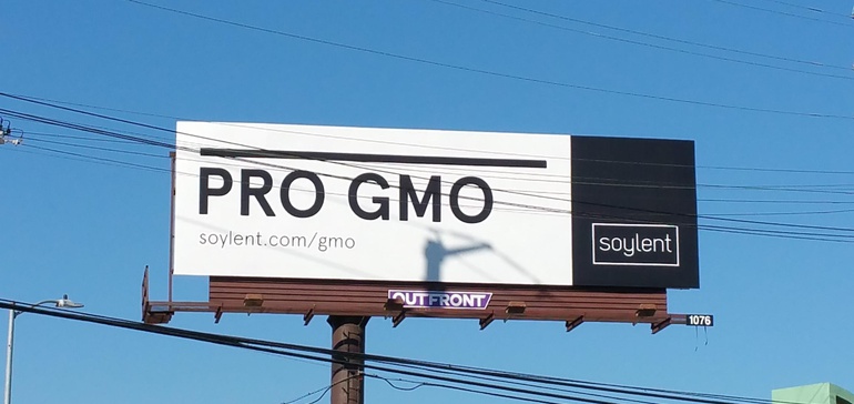 该公司表示,它使用了六种转基因成分-大豆分离蛋白,麦芽糊精,菜籽油,低聚异麦芽糖/可溶性玉米纤维,大豆卵磷脂和转基因香料-他们还在洛杉矶总部附近竖起广告牌,上面写着“PRO GMO”。