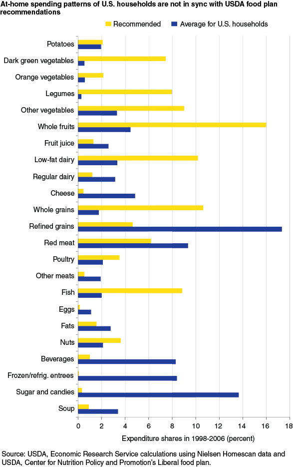 根据美国农业部的经济研究服务,美国房屋的在美国的支出模式与USDA建议的历史无关学习从1998年到2006年看消费者模式。消费者支出在23个粮食部门(土豆)中的1个中的USDA食品计划建议。那些通过大约三个百分点的红肉研究过大约三个百分点。