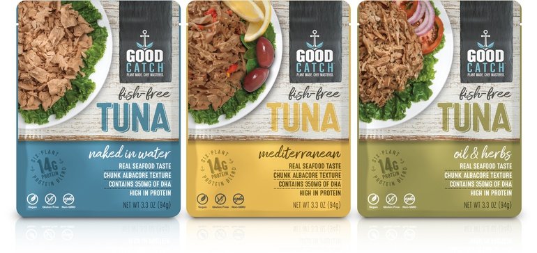乍得和德里克·萨诺兄弟创造,好捕获,豌豆,鹰嘴豆,扁豆,大豆,小豆类和海军豆的混合物,来自海藻和藻类提取物的梅花味,使产品看起来,口味和行为像金枪鱼鱼一样。聚集的食物有一个新的42,500平方英尺的植物位于俄亥俄州中部,今年开业,雇佣了80多人。